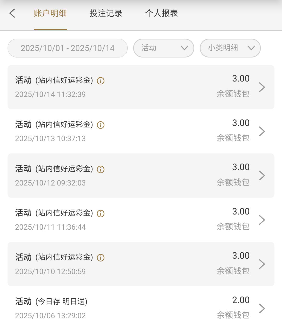 这个777444,前几天有一个回馈18块,我打到100。然后提现要充100。充了100提现了 现在每天都有三块站内信彩金 送了5天了,不知道能送多久。