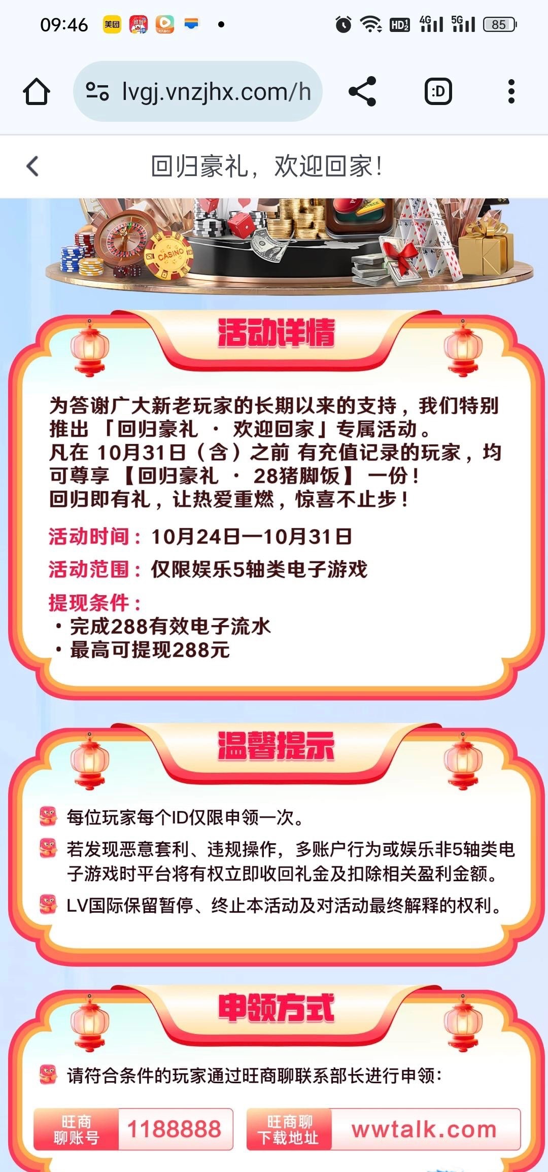 之前有充值过的,可以申请28回归彩金,2点登记的,5点才送的