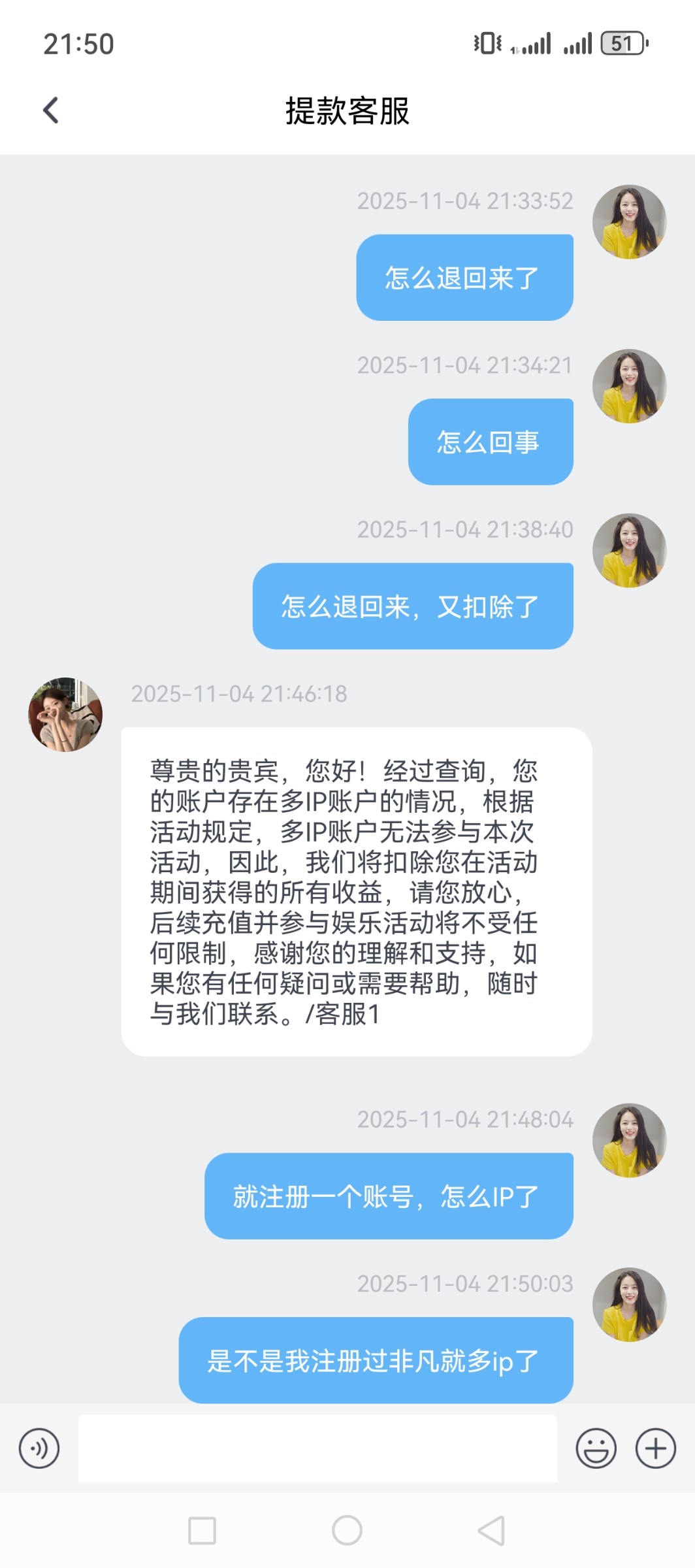 意思注册玩过旺财和非凡的就不能玩这个台子了?一个小时前注册号就成多IP了。充值了都不送彩金。搞个鸡吧