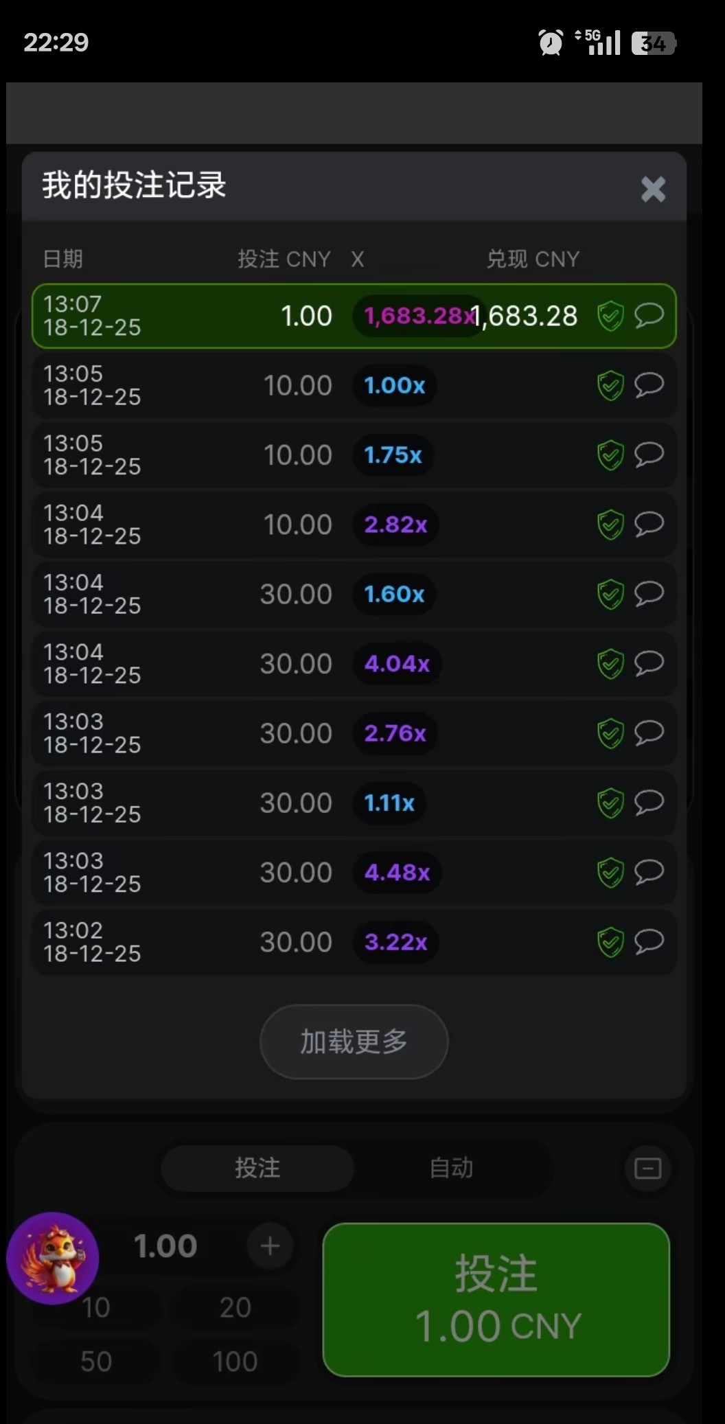 一直都是10块30块 刚好剩最后一块钱的时候 就胆子大了 可惜了