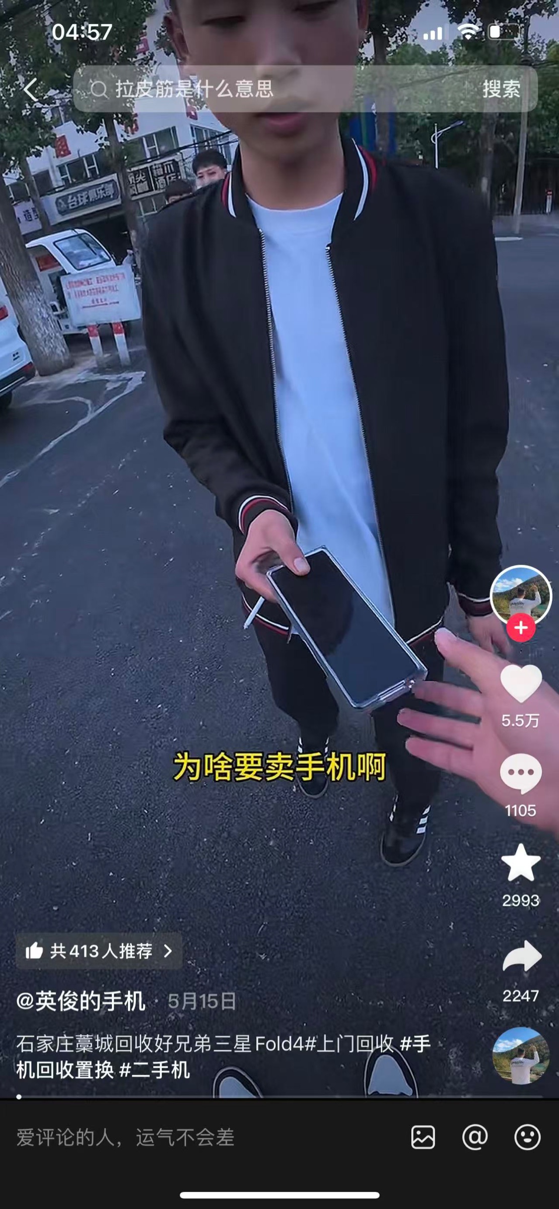 精神小伙卖手机收手机的上来就问拉皮筋了?