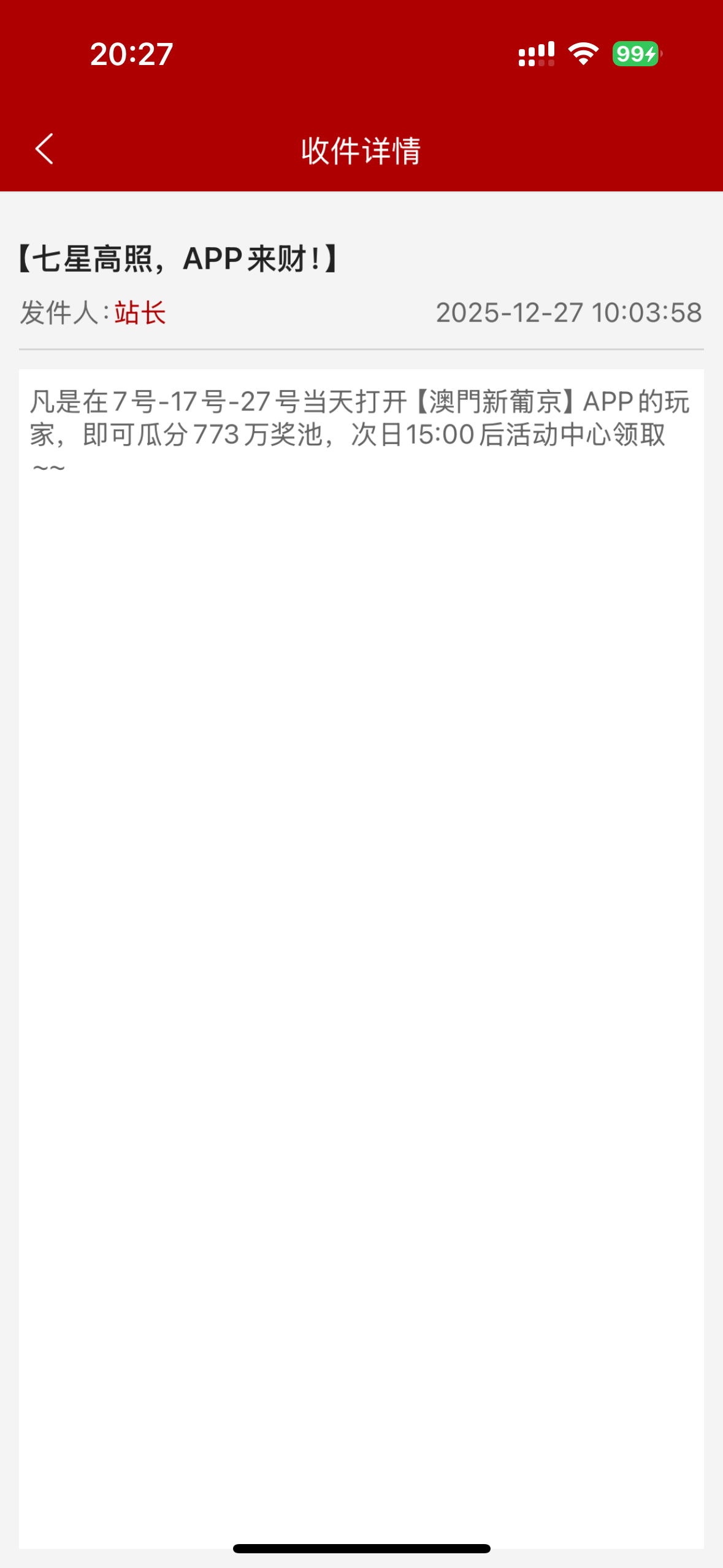 27号登入次日可以领彩金