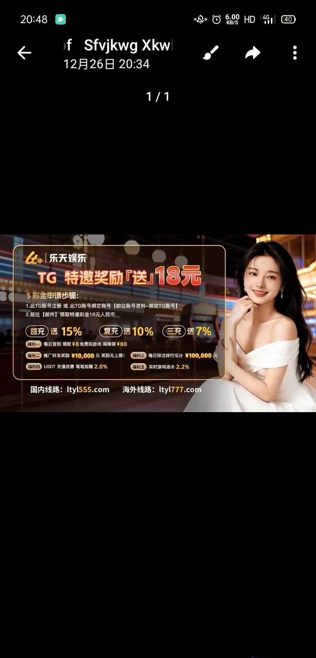 之前有老哥发过,但是要人工审核的吧,现在这个注册绑定好飞机,五分钟内到了,我没打出来。出款自测,出款的老哥发个图。网址ltyl555.com