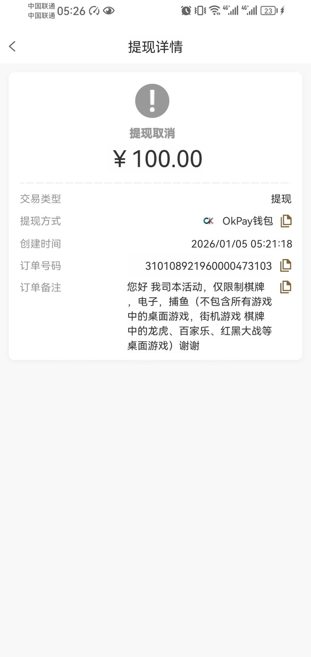 上个月充大几百,这个月领了5块钱,干到100,直接取消出款,这帮狗台没啥钱,玩不起的。