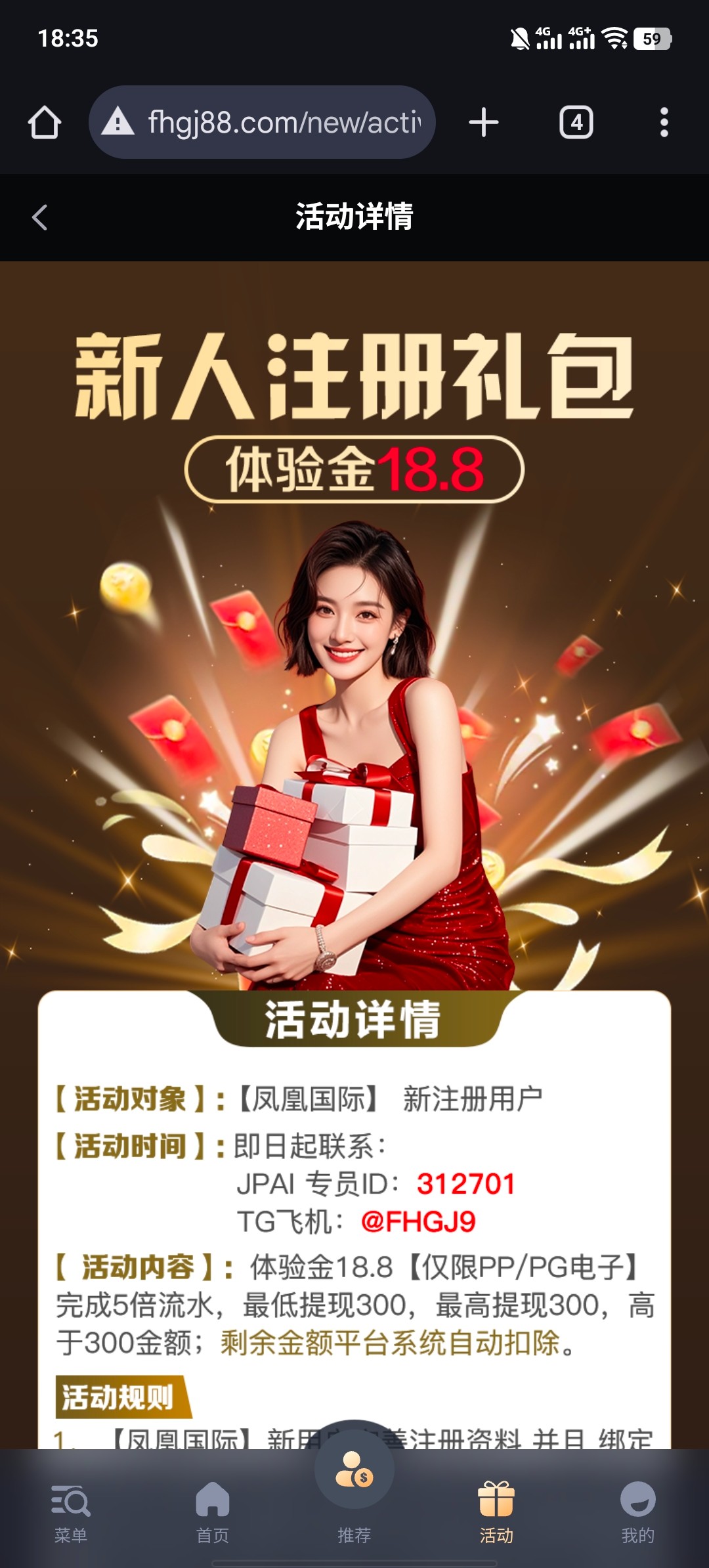 新用户注册联系TG或者JPAI专员申18.8/300提,收到短信的可以去申请特邀彩金28.8,彩金限制自行查阅网站咨询客服