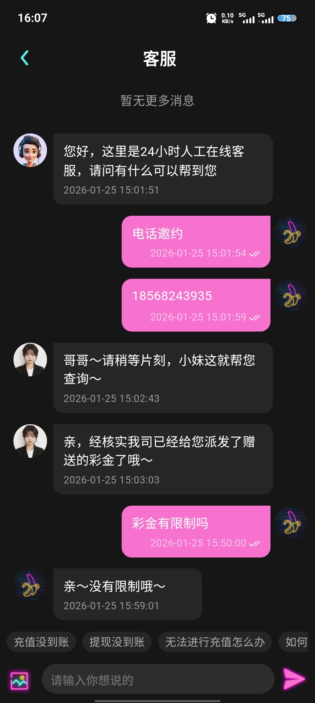 看脸的吧,我和客服讲有没有特邀充值活动,然后两分钟到了
