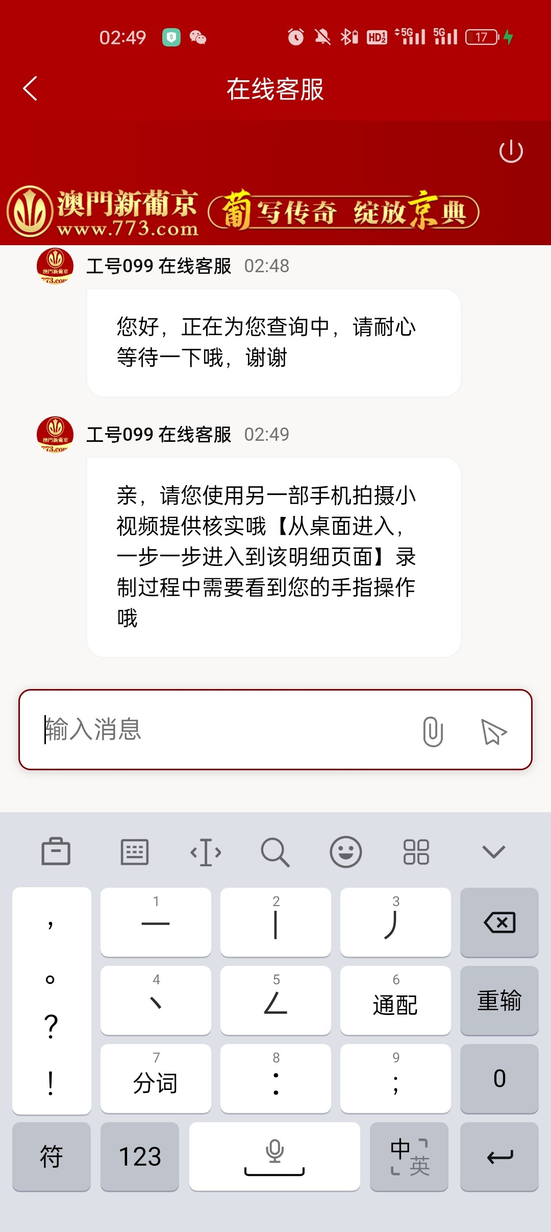 也让我录视频,漏手指,妈的,输他几万,那么不信任我