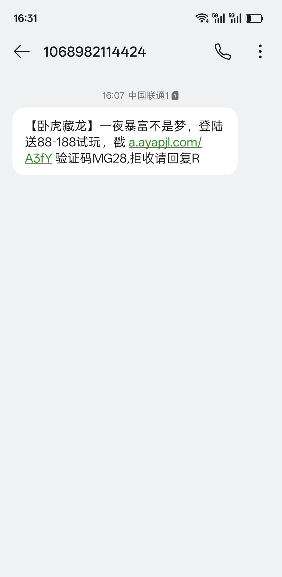 一定要先下载APP再注册账号,然后发送短信是秒到的,能不能提款?目前还不知道,各位都试一下吧,能提款的话给个反馈,谢谢531.com短信链接a.ayapjl.com/A3fY