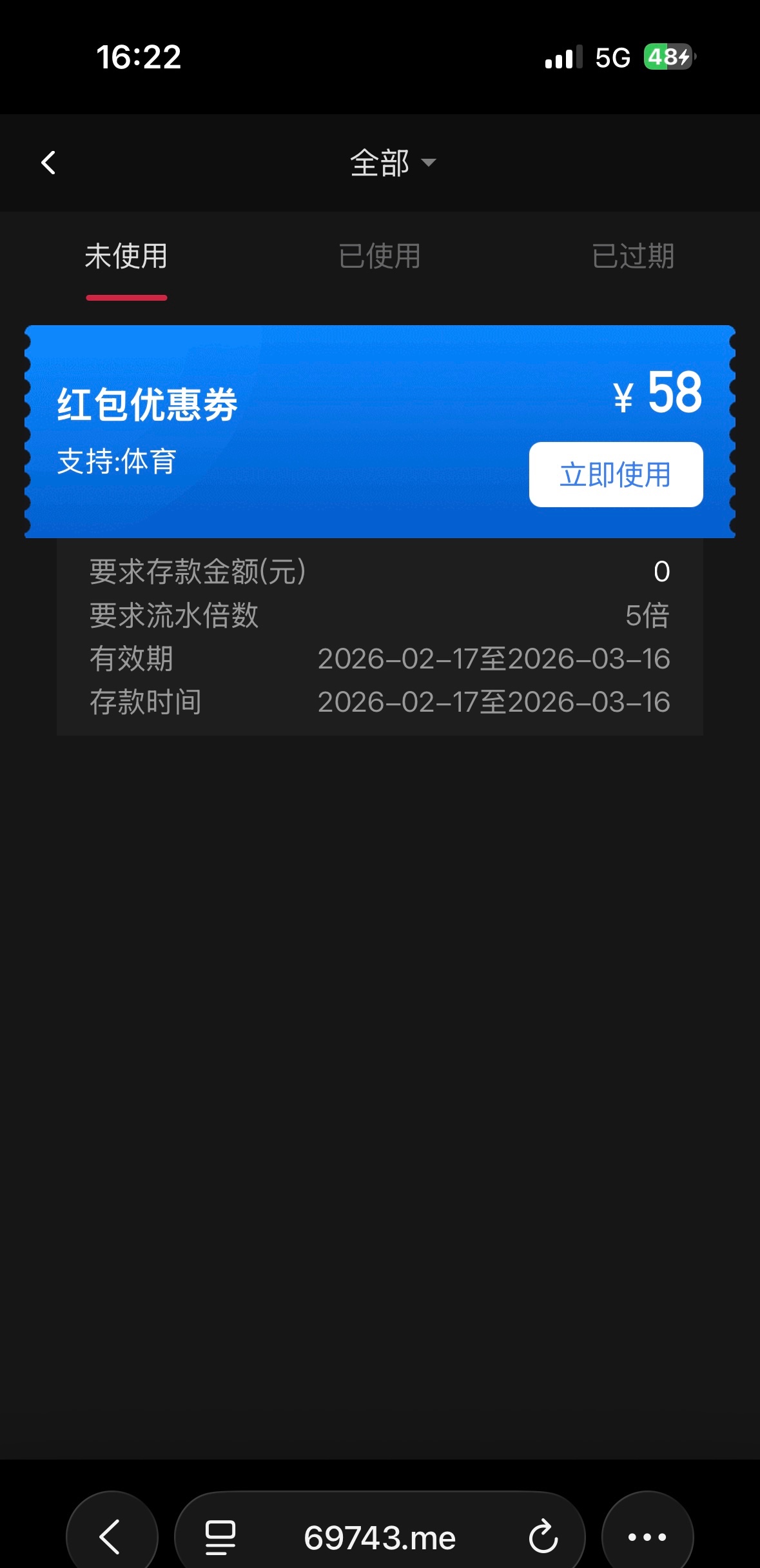 优惠券里直接领取,58免费彩金限制体育五杯水提,我两个号都领到了,我以前充值过不知道没充值有没有,官网ut88.com