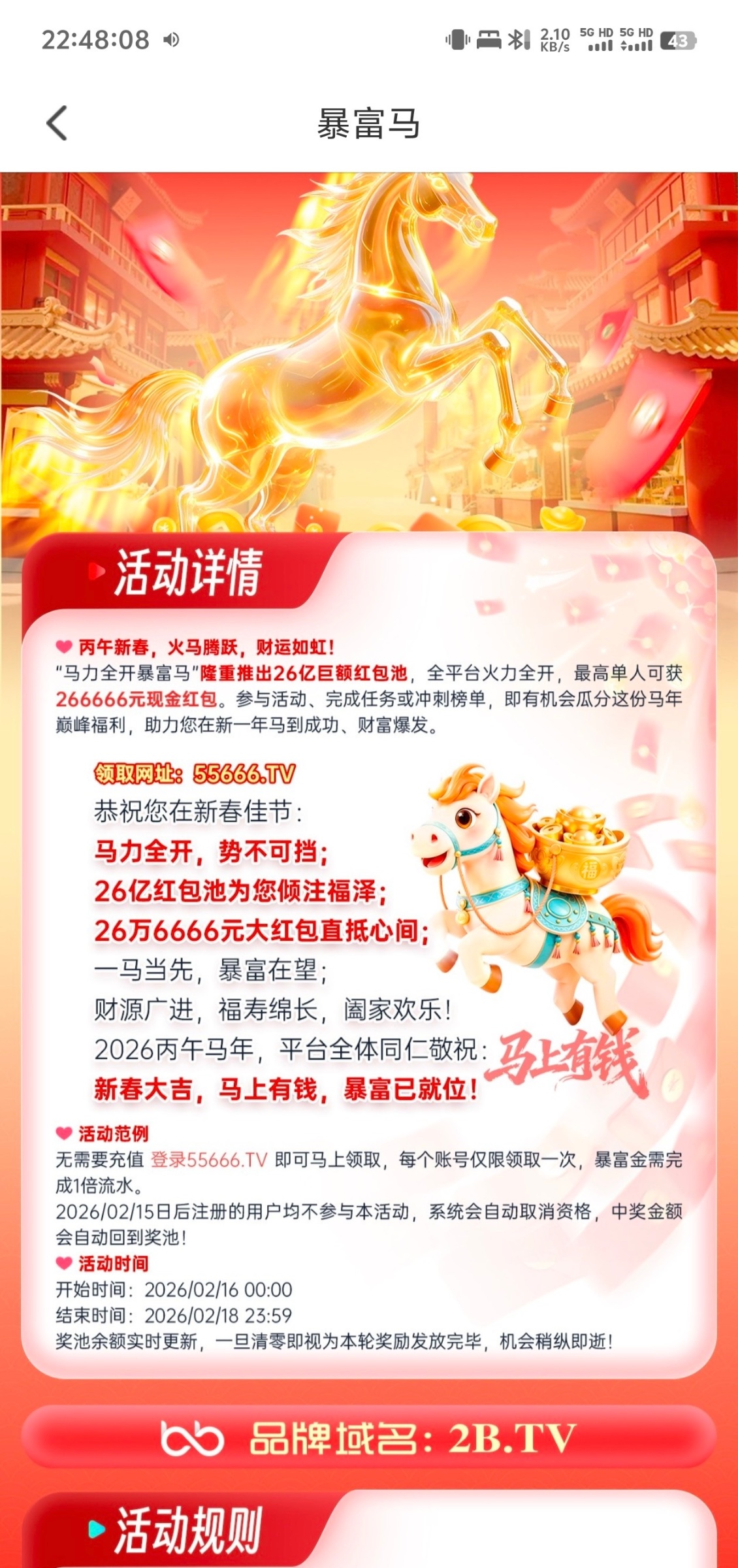 最近有充值符合要求去领,红包好像没有要求,可以先领红包等到账再领回馈马彩金,红包我领了16链接2B.TV