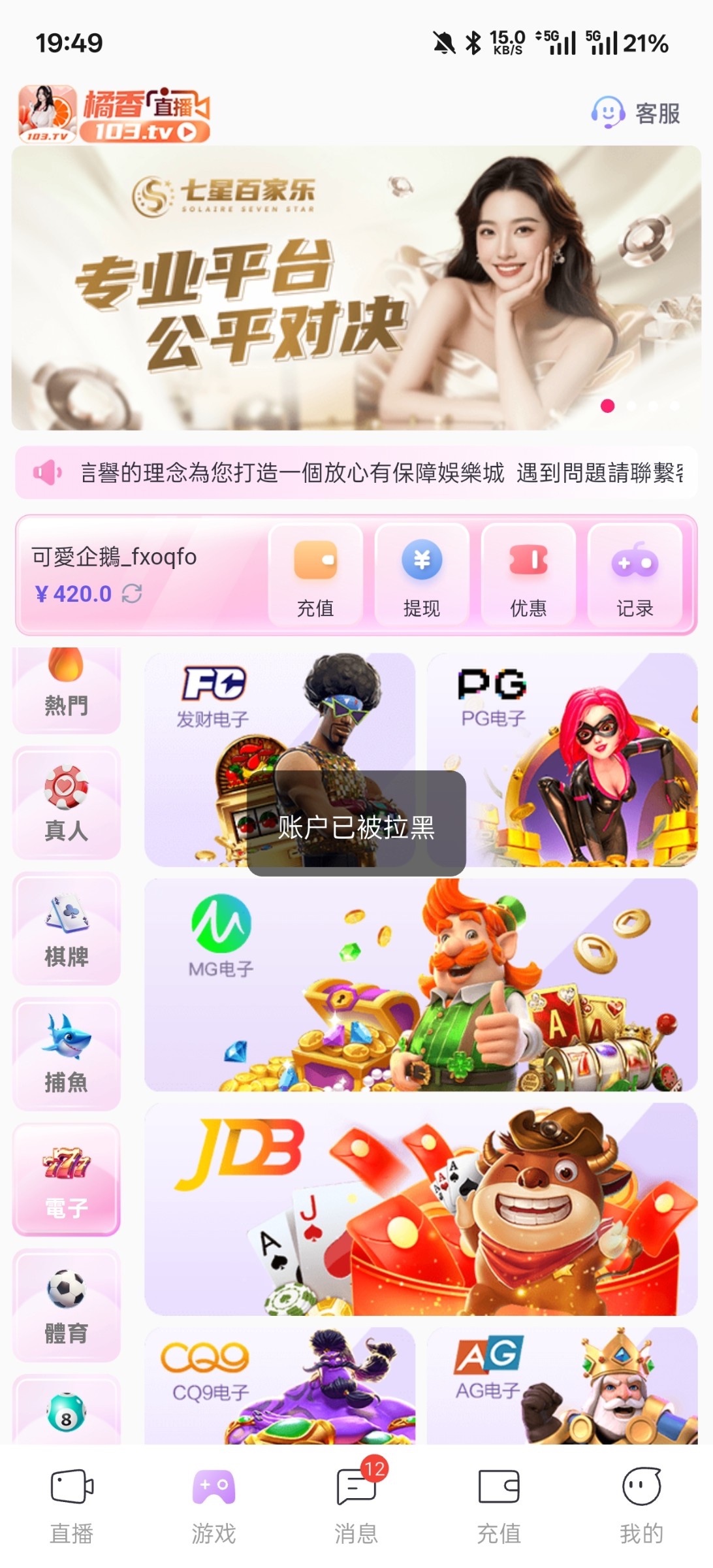 打电话送38彩金,5倍流水,盈利了提现直接封号,兄弟们注意了,请勿充值,黑平台来的哈注意避雷