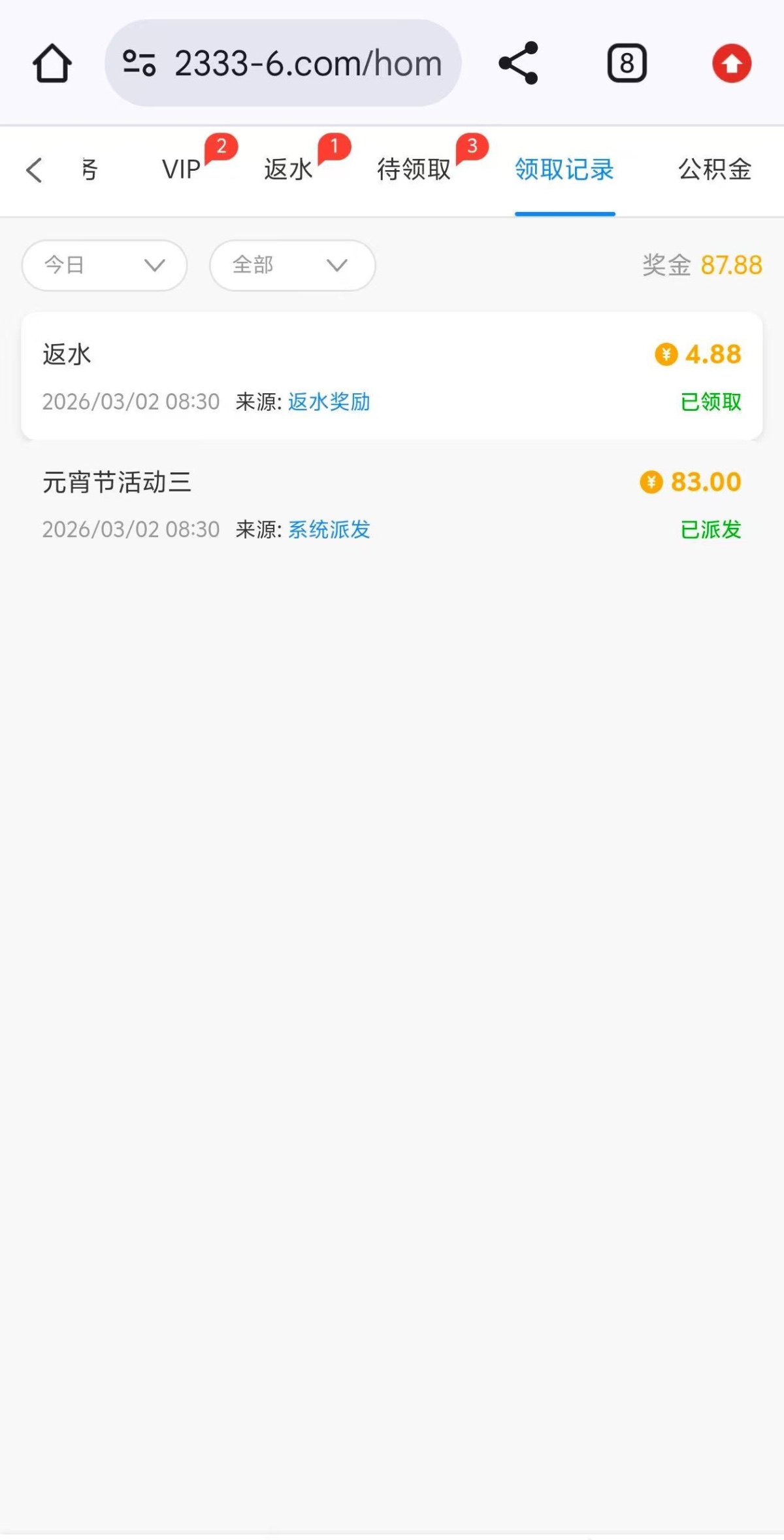 老哥们2月份有充值的可以去领元宵彩金,我是废物 领了88打不出来链接2333.com